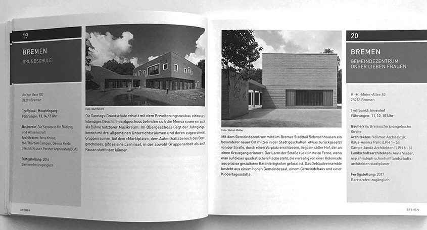 22.06.2016 Stadtdialog, BremenZusammen mit dem BDA Bremen konzipiert und organisiert Katja-Annika Pahl den Stadtdialog zum Thema „Alltagsarchitektur“. Im Rahmen des Stadtdialogs sprechen die Architekten Hans van der Heijden/Amsterdam und Lukas Imhof/Zürich.